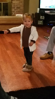 You are literally running everywhere and jabbering all the time! You have around ten consistent words right now and you understand wayyyy more than what you can say. You have the intonation down for "what's that? and there it is!" You still eat pretty well. You don't eat near as many veggies as you did when you were younger but, you wipe us out of fruit. And don't let you see a french fry. You would snack all day long if I would let you. Just like your mama.We recently took your pacifier away. We had been trying to only give it to you at nap and night times, but you knew it was still around during the day and if you saw it you were wanting it. So after school on Tuesday I decided to just snip the nipple off of it. You freaked out for a solid hour because it hurt your feelings so bad. You moved it all around your mouth trying to figure out a way to suck it and finally just gave up and threw it. You went to sleep easy that night, but had a fussy next day at school. Other than that you have surprisingly done really well without it. You can identify nose, eyes, mouth, ears, and feet on yourself and on us. You still love books more than anything and your newest thing is giving us a surprised look with your mouth open so wide when you see new things. We put our Christmas tree and decorations up the day after Thanksgiving you LOVE it all. When you woke up from your nap that day you were so excited to see the tree. Now, everyday when we get home from school you go around helping me plug all the Christmas lights in. This Christmas is going to be so fun. I can't wait to start our own little traditions.